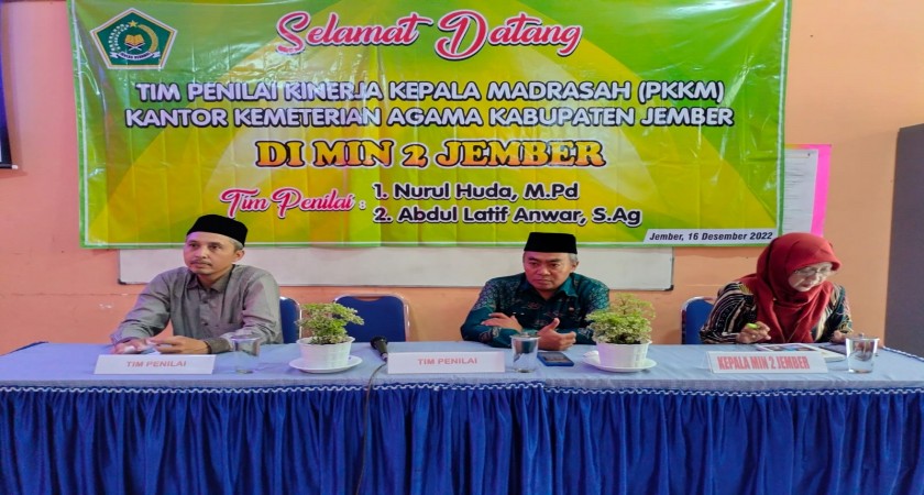 Jum'at 16 Januari 2023 di MIN 2 Jember melaksanakan kegiatan Penilaian Kinerja Kepala Madrasah (PKKM) oleh Tim Penilai Kantor Kementerian Agama Kabupaten Jember